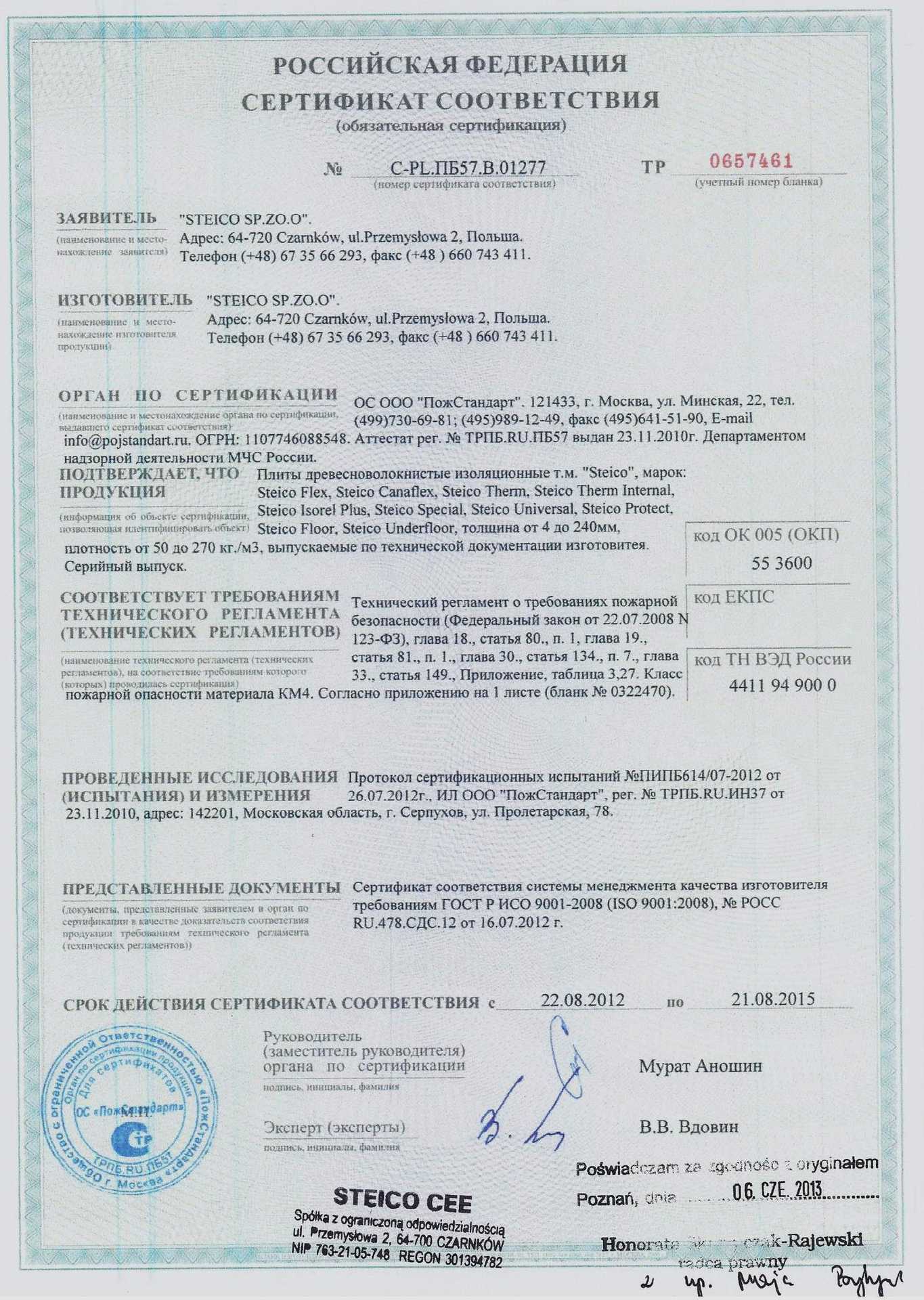 Подтвержденное сертификатами и действующими ГОСТ